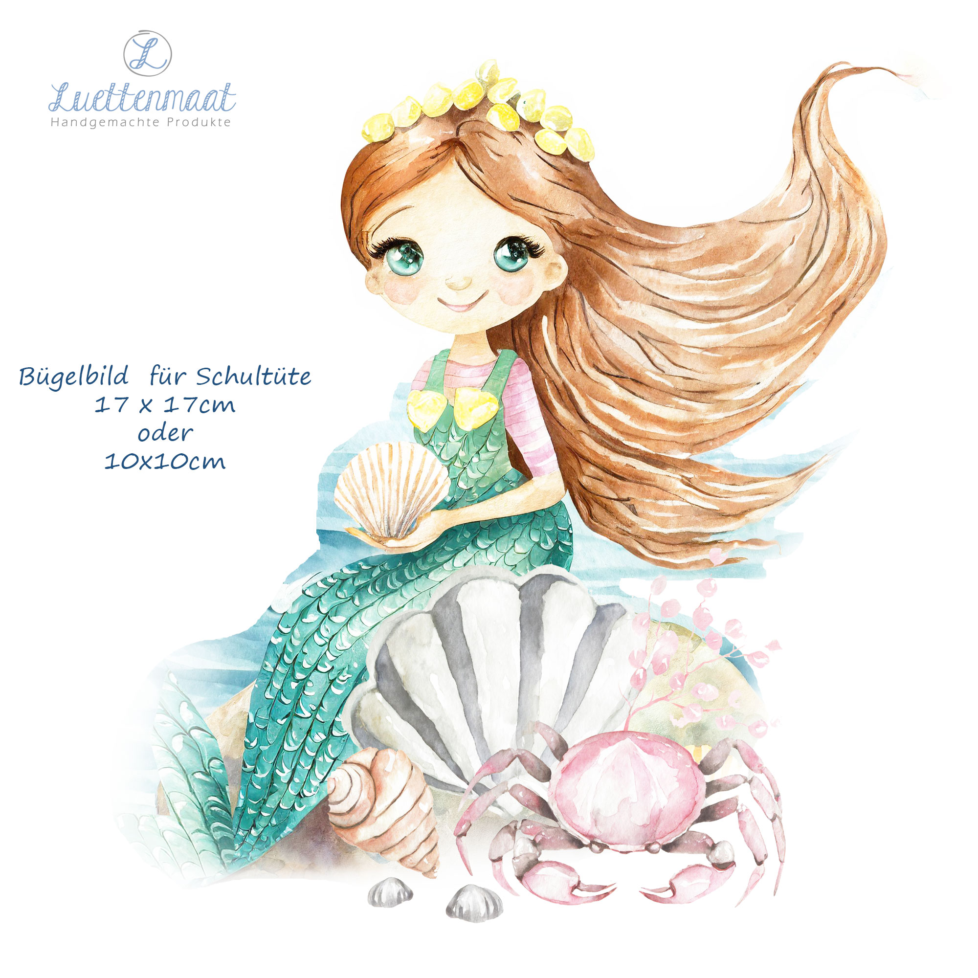 Bügelapplikation Meerjungfrau-mit Muscheln