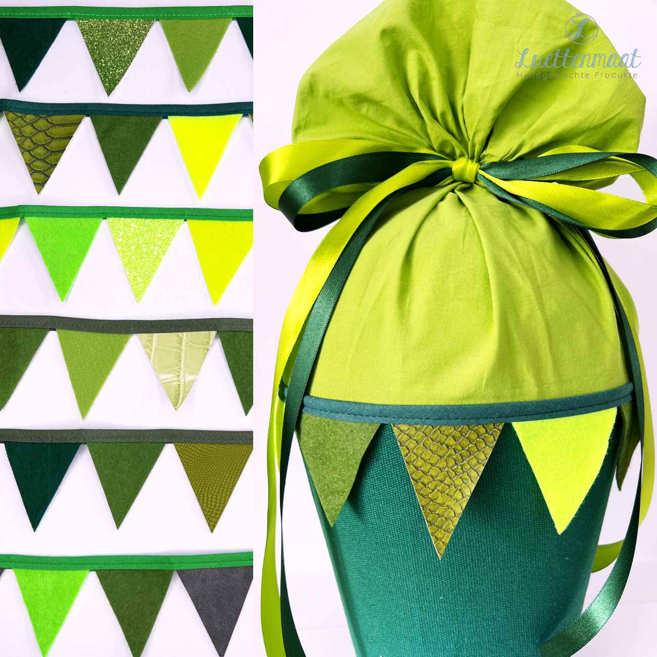 Für eine Schultüte braucht man circa 60 cm. Sie können die Wimpelkette für ihre benötigte Länge kürzen.