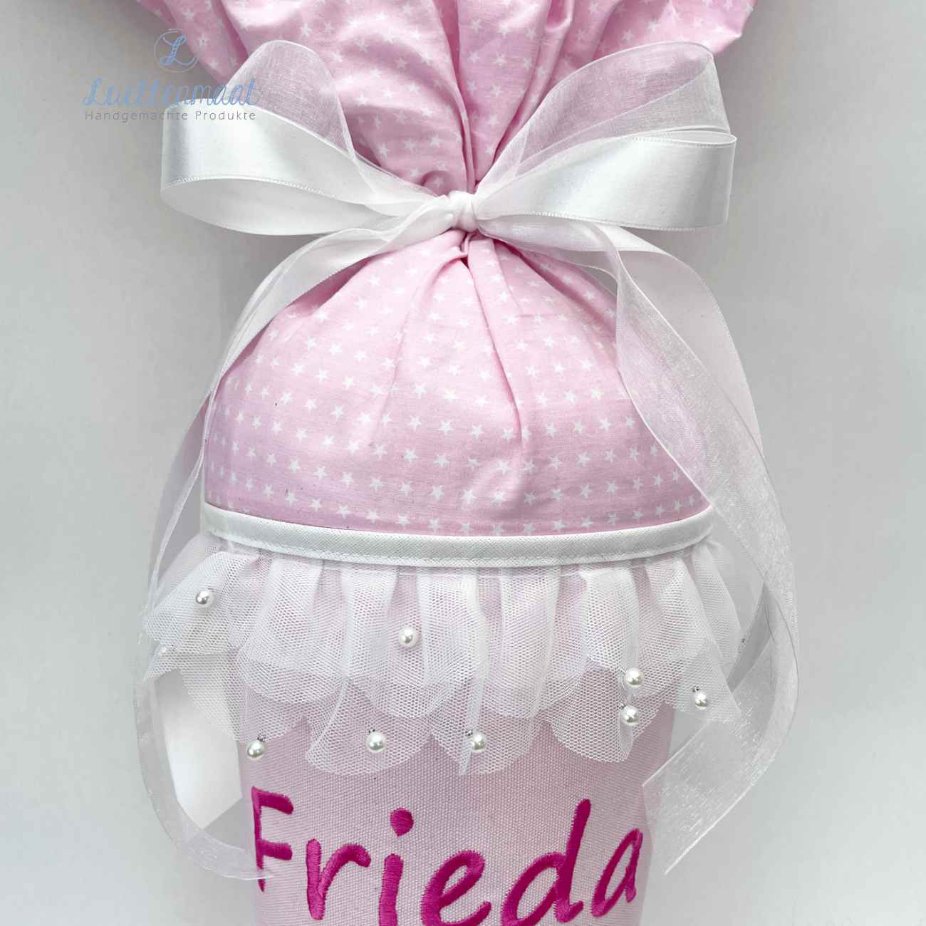 Für eine Schultüte braucht man circa 60 cm. Sie können die Wimpelkette für ihre benötigte Länge kürzen.