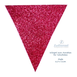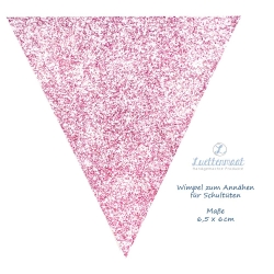Set Wimpelkette für Schultüte mit Glitzerwimpel und Schleifenband rosa weiß