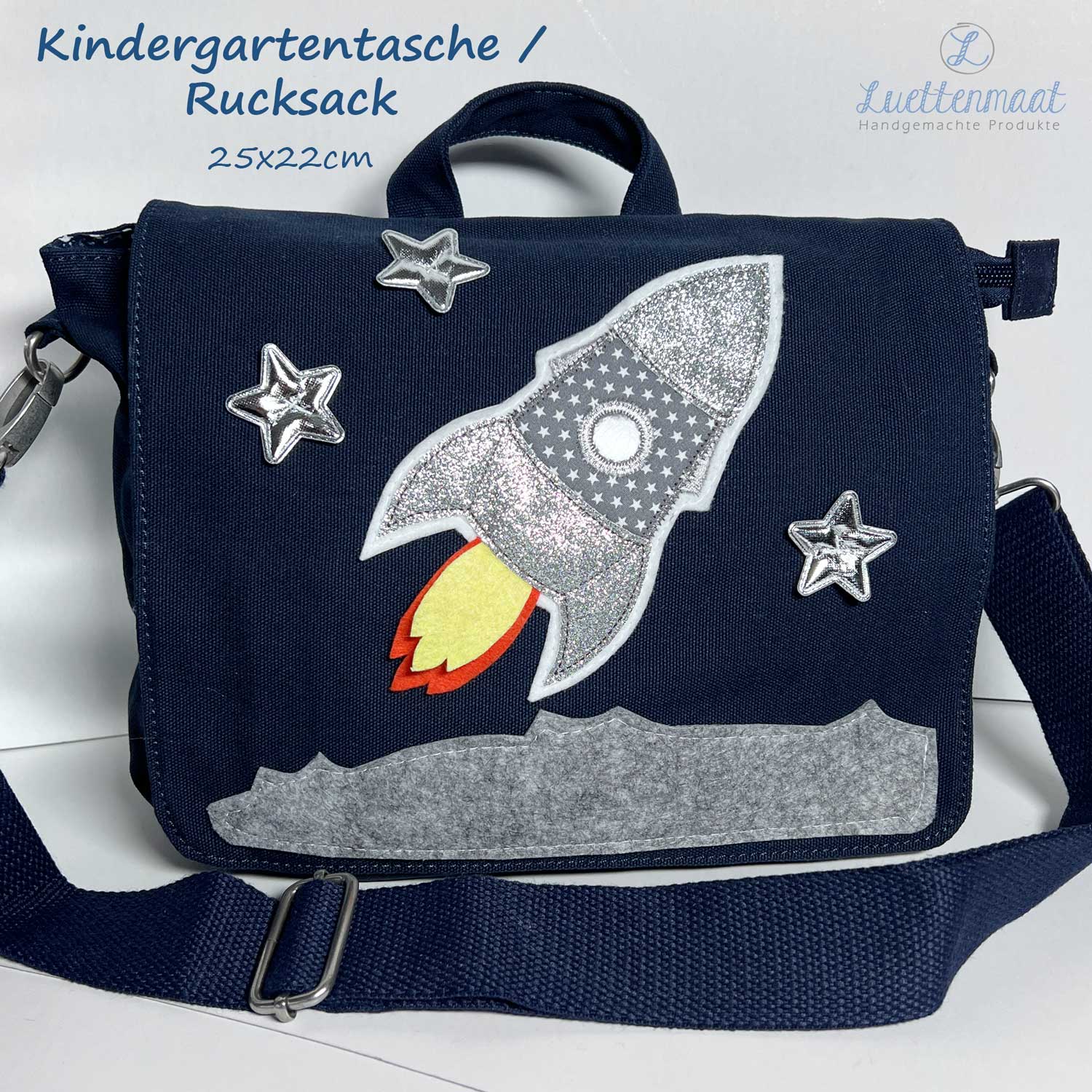 kindergartentasche mit Rakete glitzer